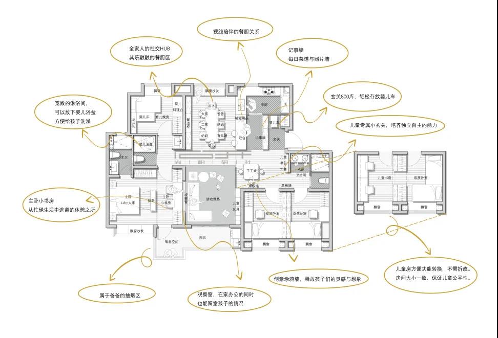 比如现在是三孩时代,有些人认为三孩家庭可以忽略不计,但有些房企或设计院已经开始研发三孩户型了,你做了别人不愿意做的细分市场,那这部分的客户是不是就归你了?比如已经有不少公司推出了三孩户型: