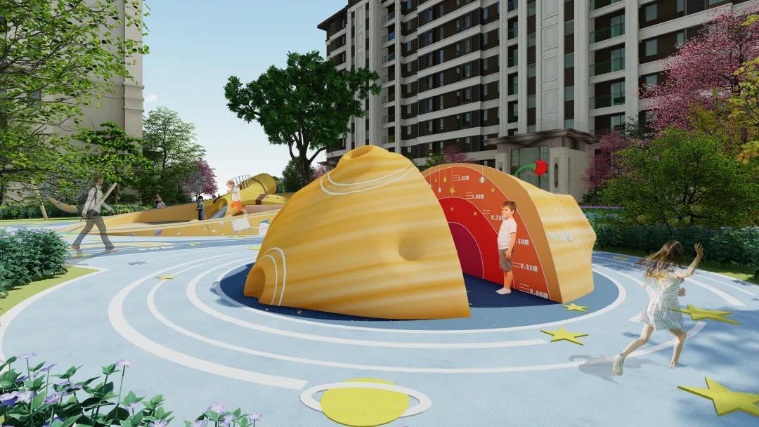 针对社区室外空间,世茂在儿童游玩区打造「茂想家」,构筑家庭成员全龄互动的友好陪伴空间,把家门口的社区变成自然课堂。「茂想家」兼顾年龄段孩子以及家长看护、家庭互动的需求,由0-3岁活动区、4-12岁活动区、多个家长看护区构成。学步区涂鸦墙可以启发幼龄儿童的色彩感知,看护区休憩空间可以便于与家长的互动交流;场地中,草坡与树洞的结合、蹦床场地的设置又给予家长与孩子一同玩乐的可能。在这里,所有年龄段的孩子都能获得知识、体能、社交的成长。目前,「茂想家」已在成都、青岛、昆明等多个城市落地。