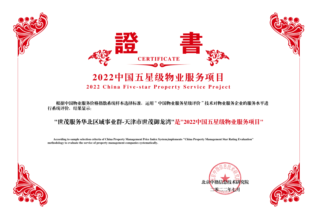 在服务力的加持下,世茂美好社区“星罗棋布”,星级物业项目“多点开花”。厦门世茂璀璨天城、南宁世茂龙岗花园、天津世茂御龙湾、兰州滨河一号、晋中介休市润苑等荣获“2022中国五星级物业服务项目”称号。