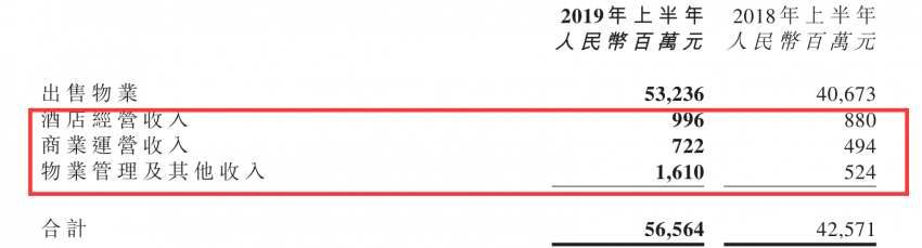 半年报数据显示,世茂房地产上半年出售物业532.36亿元,同比增加30.89%,酒店经营收入9.96亿元,同比增加13.18%,商业运营收入7.22亿元,同比增加56.28%,物业管理及其他收入16.1亿元,同比增加207.25%。
